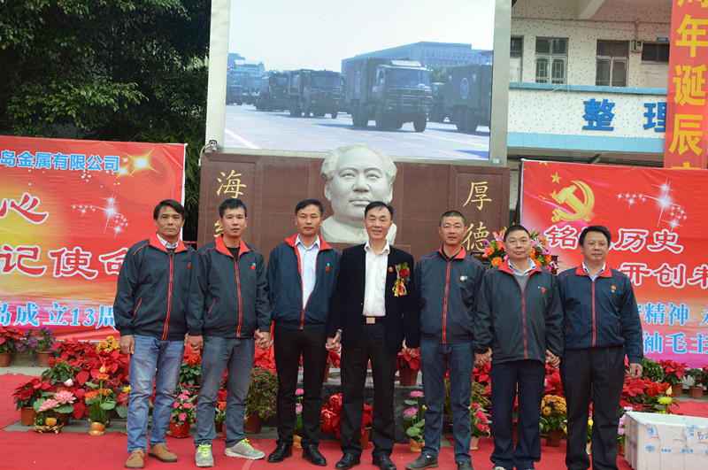 綠志島實(shí)業(yè)由來自湖南的朱祖生先生創(chuàng)業(yè)于2000年,由最初的錫渣冶煉廠經(jīng)過十來年的艱苦奮斗,現(xiàn)在公司產(chǎn)品包括焊錫條、焊錫絲、焊錫膏,助焊劑,清洗劑,防銹劑,潤滑油等。綠志島實(shí)業(yè)的發(fā)展,在以毛主席思想為信仰的指引下突飛猛進(jìn),在“吃水不忘挖井人”的感恩心下穩(wěn)步發(fā)展。為了鞏固毛主席思想作為綠志島的信仰核心,綠志島于2012年12月26日從泰山迎接來毛主席泰山石像,并立于公司內(nèi)部。自此,綠志島每年12月26日都會(huì)齊聚眾多認(rèn)同毛主席的朋友,在綠志島內(nèi)緬懷紀(jì)念毛主席。2017年是綠志島舉辦毛主席誕辰第六年,為此和志同道合的朋友們齊聚一堂,共慶毛主席誕辰。